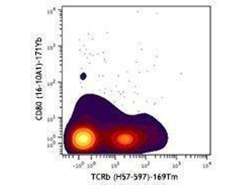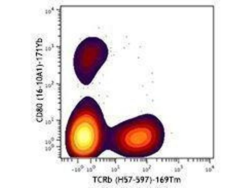 - CD80 is a 60 kD highly glycosylated protein. It is a member of the Ig superfamily and is also known as B7-1, B7, and Ly-53. CD80 is constitutively expressed on dendritic cells and monocytes/macrophages, and inducibly expressed on activated B and T cells. The ligation of CD28 on T cells with CD80 and CD86 (B7-2) on antigen presenting cells (such as dendritic cells, macrophages, and B cells) elicits co-stimulation of T cells resulting in enhanced cell activation, proliferation, and cytokine production. CD80 appears to be expressed later in the immune response than CD86. CD80 can also bind to CD152, also known as CTLA-4, to deliver an inhibitory signal to T cells.