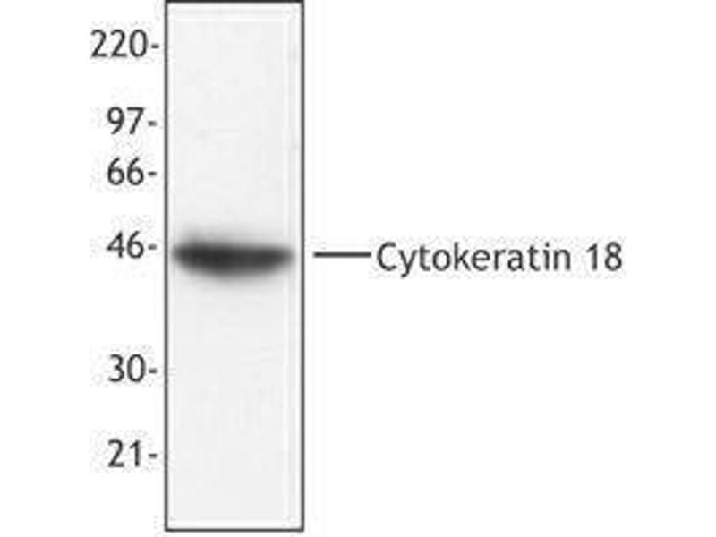 - Cytokeratin 18, also known as keratin 18, is a type I intermediate filament protein with a molecular weight of approximately 48 kD. Cytokeratin 18 is a heterotetramer composed of two type I and two type II keratins. Cytokeratin 18 associates with cytokeratin 8 and is widely expressed in simple epithelial tissues in adults, where it is found in the cytoplasm, nucleus, and nucleolus. Cytokeratin 18 is associated with the cytoskeleton and mutations in this protein have been associated with liver disease after environmental insult. Cytokeratin 18 can be modified by glycosylation, phosphorylation (Ser34 and Ser53), acetylation (Ser2), and proteolytic cleavage at amino acids 238 and 397 by caspase family members. The cytokeratin 18 protein interacts with a number of proteins including caspase 3, 14-3-3 gamma, 14-3-3 zeta, 14-3-3 sigma 14-3-3 beta, 14-3-3 eta, keratin 5, keratin 8, TNF receptor II, plakophilin 2, EGF receptor, and usherin, among others.