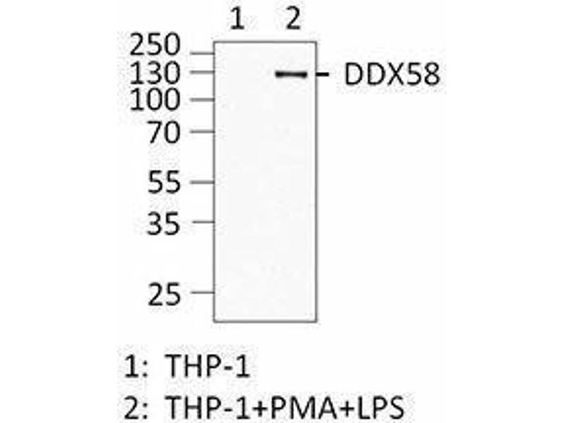 DDX58, also named RIG-1, is a member of the DExD/H-box-containing RNA helicase family. DDX58 was first reported as a retinoic acid-inducible gene and subsequently characterized as a pattern recognition receptor (PRR). DDX58 is responsible for sensing cytosolic viral RNA and has been shown to initiate innate antiviral immune responses. DDX58 is composed of two caspase recruitment domains (CARDs), a helicase domain, and a C-terminal regulatory domain (CTD). In response to virus infections, the DDX58 CTD domain binds 5'-triphosphorylated dsRNA, which induces multimerization of DDX58 with the adaptor molecule MAVS on the mitochondria through the CARD domains. MAVS transduces the signal to activate downstream transcription factors, such as IRF-3, IRF-7, and NF-κB, leading to production of proinflammatory cytokines and type I interferons.