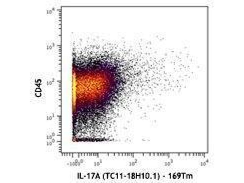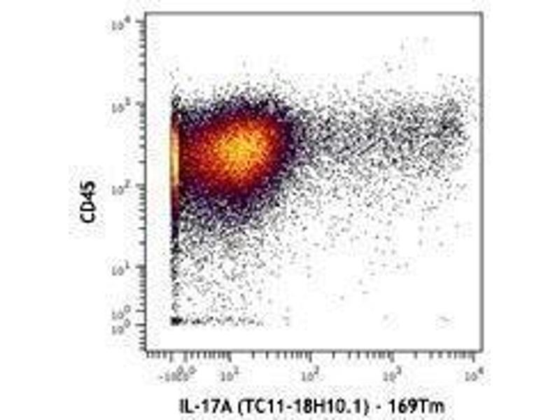 IL-17, also known as CTLA-8, is a T cell-expressed pleiotropic cytokine that exhibits a high degree of homology to a protein encoded by the ORF13 gene of herpes virus Saimiri. IL-17 is produced by Th cells (Th17) that are distinct from the traditional Th1- and Th2-cell subsets. IL-23 plays an important role in triggering IL-17 production. Both recombinant and natural IL-17 have been shown to exist as disulfide linked homodimers. IL-17 exhibits multiple biological activities on a variety of cells including: the induction of IL-6 and IL-8 production in fibroblasts, activation of NF-κB, and costimulation of T cell proliferation. IL-17 is an essential inflammatory mediator in the development of autoimmune diseases. Neutralization of IL-17 with monoclonal antibody is able to ameliorate the disease course.