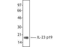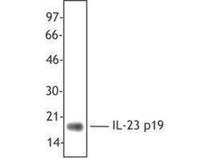 - The HLT2736 clone recognizes human IL-23, a heterodimeric cytokine composed of the p40 subunit shared with IL-12 and a specific p19 subunit. This antibody recognizes heterodimeric IL-23, but does not react with the p40 subunit alone or recombinant IL-12(p70) when used as a capture antibody in ELISA. IL-23 is secreted by activated dendritic cells and macrophages and has been shown to enhance IFN-γ secretion by memory (CD45RO) T cells in an IL-2 dependent manner. IL-23 may also induce unique Th subset (designated ThIL-17) that secretes the cytokines IL-17, IL-6, TNF and low levels of IFN-γ. IL-23 has been shown to promote immunity to mycobacteria and has been shown to be upregulated in response to some viral infections and in psoriatic lesions. IL-23 binds to the IL-23 receptor comprised of a β1 subunit shared with the IL-12 receptor and IL-23-specific subunit. This antibody has been shown to be useful for Western blotting and immunohistochemistry using formalin-fixed, paraffin embedded tissues with (catalyzed signal amplification).