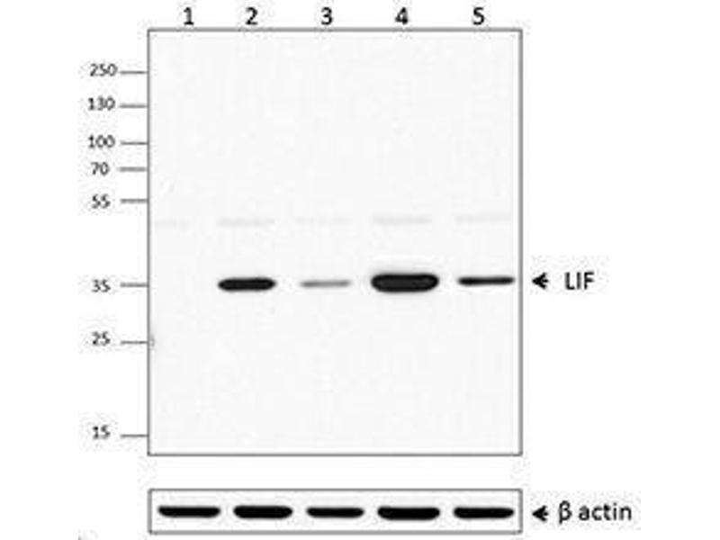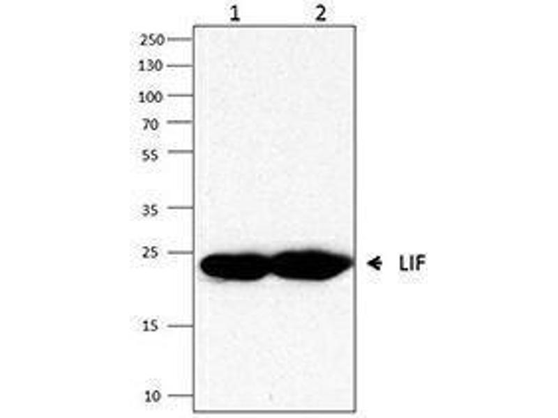 Leukemia inhibitory factor (LIF) is a pleiotropic cytokine that belongs to the IL-6 receptor family. It binds to a heterodimeric membrane receptor made up of a LIF-specific subunit, gp190, and the subunit gp130. The LIF complex receptor signals though STAT3 and JAK kinases. LIF expression has been observed in various tissues including the thymus, lung, and neuronal tissue. LIF displays diverse biological effects, but is best known for its ability to inhibit the differentiation of embryonic stem cells in mice and contributes to stem cell self-renewal. It is involved in the induction of hematopoietic differentiation in normal and myeloid leukemia cells, as well as the induction of neuronal cell differentiation. It also regulates mesenchymal to epithelial conversion during kidney development, and also may have a role in immune tolerance at the maternal-fetal interface. LIF can be upregulated by pro-inflammatory cytokines such as TNF-α and IL-17. Elevated levels of LIF have been found in cases of rheumatoid arthritis, neural injury, systemic inflammation, and tuberculosis.