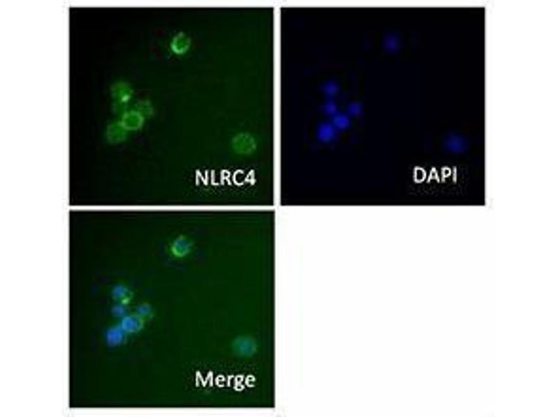 NLRC4 , also known as IPAF, is a member of the NOD-like receptor (NLR) family. The NLR proteins share a conserved DNA-binding NACHT domain, a caspase recruitment domain (CARD), and a leucine-rich repeat (LRR) domain responsible for pathogen pattern recognition. NLRC4 was found to play an important role in the innate immune response against bacterial infection. During Gram-negative bacteria infections, such as Shigella, Salmonella, Legionella, or Pseudomonas, NLRC4 detects and is activated by translocated bacterial flagellin or PrgJ-like rod proteins subsequently resulting in the assembly of the NLRC4 inflammasome. The activated inflammasome drives proteolytic activation of caspase-1, leading to the processing and secretion of the proinflamatory cytokines IL-1β and IL-18.