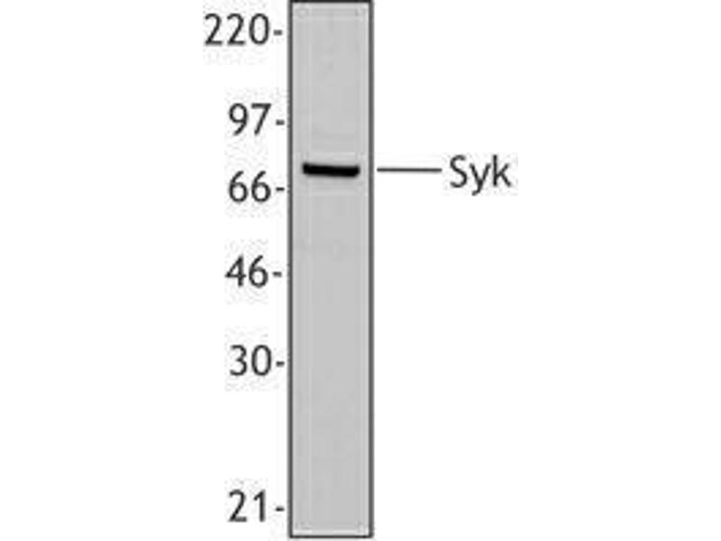 Syk is a cytoplasmic 72 kD non-receptor tyrosine kinase that is widely expressed in hematopoietic cells. The Syk kinase associates with a number of proteins including c-Src, Lck, Lyn, Fyn, Vav1, STAT3, SHP1, Grb2, and LAT to couple immunoreceptors to downstream signaling events mediating cellular proliferation, differentiation, and phagocytosis. Syk is modified by phosphorylation on multiple tyrosine sites. The SYK-01 monoclonal antibody (raised against amino acids 5-360 of human Syk) recognizes human, mouse, and rat and Syk and has been shown to be useful for Western blotting, immunoprecipitation, and immunohistochemistry.