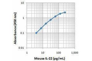 IL-22 is a cytokine structurally related to IL-10. Mouse IL-22 consists of 179 amino acids and has a predicted molecular weight of 20 kD. It is secreted primarily by Th17, Th1, Th2, lymphoid tissue inducer cells (LTi), and subsets of natural killer cells. It has been reported that aryl hydrocarbon receptor (AhR) expression is essential for the production of IL-22 by TCRγδ T cells. AhR activation increases Th17 polarization and induces IL-22 production. IL-22 functions by engaging the heterodimeric IL-22 receptor (IL-22R) complex, consisting of two receptor subunits, IL-22R1 and IL-10Rβ. IL-22 acts on nonhematopoietic tissue cells, such as epithelial cells of the digestive and respiratory systems and keratinocytes of the skin. IL-22 is involved in inflammatory processes such as dermal inflammation, psoriasis, inflammatory bowel disease, hepatitis, and Crohn's disease. Moreover, it plays a critical role in mucosal immunity and the wound healing process.