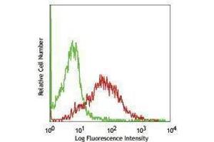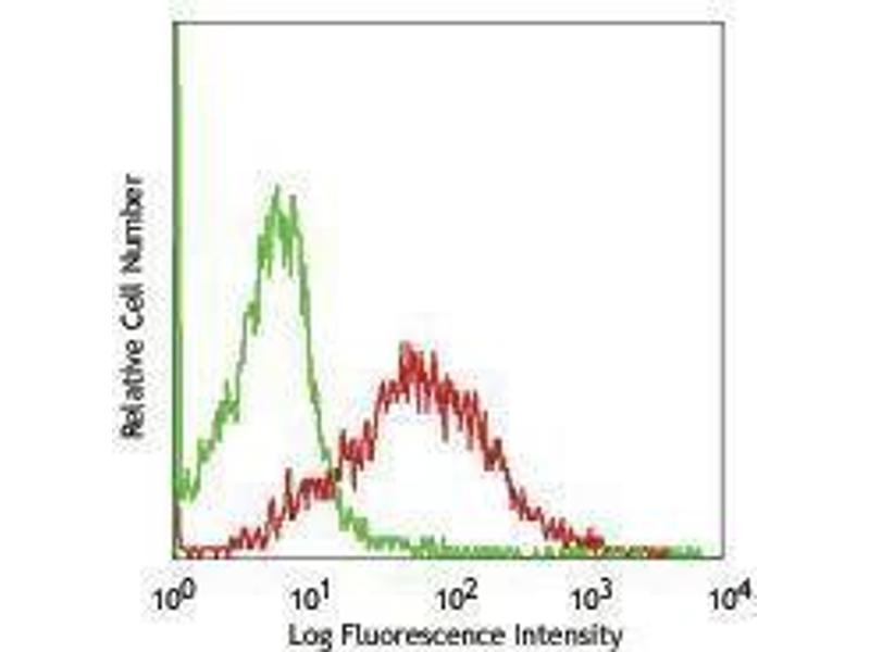 CD279 is a 50-55 kD immunoglobulin superfamily member, also known as programmed death-1 (PD-1). PD-1 is expressed on a subset of CD4-CD8- thymocytes, and on activated T and B cells. PD-1 is thought to be involved in lymphocyte clonal selection and peripheral tolerance. The PD-1 ligands, PD-L1 (also known as B7-H1) and PD-L2 (B7-DC), are members of the B7 immunoglobulin superfamily. The RMP1-14 antibody has been reported to block the binding of PD-1 to its ligands (B7-H1 and B7-DC) and to inhibit T cell proliferation and cytokine production costimulated by macrophages (but not by dendritic cells and B cells).