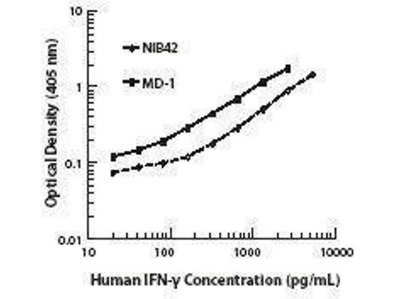 - Interferon-γ is a potent multifunctional cytokine which is secreted primarily by activated NK cells and T cells. Originally characterized based on anti-viral activities, IFN-γ also exerts anti-proliferative, immunoregulatory, and proinflammatory activities. IFN-γ can upregulate MHC class I and II antigen expression by antigen-presenting cells. The 4S.B3 antibody reacts with the human IFN-γ. The MD-1 antibody reacts with human and monkey interferon-gamma (IFN-γ). The MD-1 antibody can neutralize the bioactivity of natural or recombinant IFN-γ.