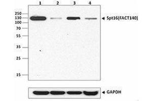 Spt16 is a 120-140 kD nuclear protein and a component of the FACT complex (facilitates chromatin transcription). The FACT140 complex is composed of the Spt16 and the SSRP1 proteins. This complex interacts with nucleosomes and histone H2A/H2B dimers to promote nucleosome disassembly and allow transcription elongation. The 8D2 monoclonal antibody recognizes human Spt16 and has been shown to be useful for Western blotting.