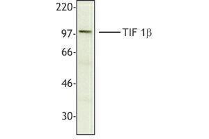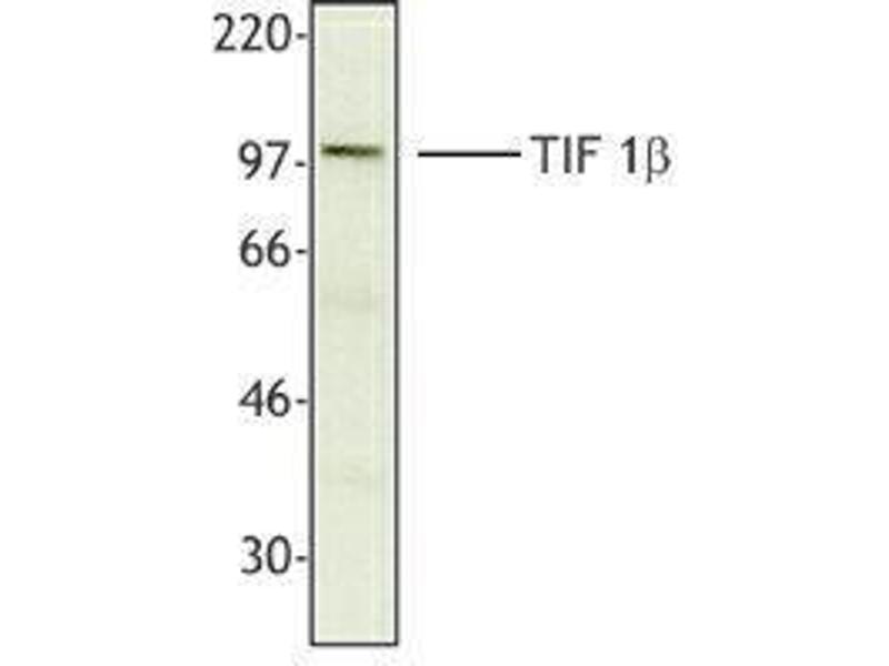 TIFβ (transcription intermediary factor 1-beta) is an 88 kD member of the tripartite motif family. This protein contains three zinc binding domains, a RING domain, a B-box type 1 and type 2 domain, and a coiled-coil region. TIFβ is found in the nucleus and associates with specific chromatin regions. This protein forms a complex with KRAB-domain transcription factors and recruits setdbl to histone 3 to increase KRAB-mediated transcriptional repression. TIF1β has been reported to interact with setdbl and cbx3 proteins. Studies using knockout mice reveal the important function of TIF1β in regulating genomic imprinting, T cell activation, and T cell tolerance.