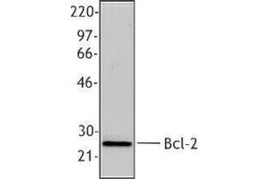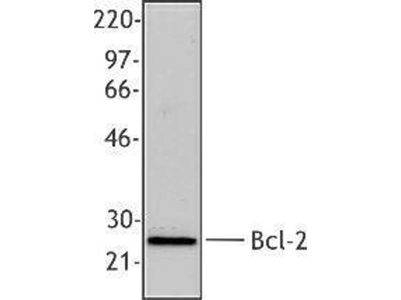 - Bcl-2 (B-cell leukemia 2) is an apoptotic protein and a member of the Bcl-2 family containing BH1-4 domains. Two reported isoforms exist α=25 kD, β=22 kD. The Bcl-2 protein forms homo- or hetero-dimers with other Bcl-2 family members. Bcl-2 is distributed in the outer mitochondrial membrane, the nuclear envelope, and the endoplasmic reticulum. This protein blocks apoptotic death by controlling mitochondrial membrane permeability. Cleavage of Bcl-2 can convert to pro-apoptotic (by cleavage of BH4 domain). Bcl-2 has been reported to regulate cell cycle progression via ROS. This protein is modified by ASK1/JNK1, PKC, ERKs, and stress-activated kinase phosphorylation and can be ubiquitinated. Bcl-2 has been shown to interact with Apaf-1, Raf-1, TP53BP2, caspase-3, and form heterodimers with Bax, Bad, Bak, Bcl-xL, and Bag-1. Clone BCL/10C4 has been shown to be useful for Western blotting, immunoprecipitation, and immunofluorescence of the mouse and rat Bcl-2 protein.