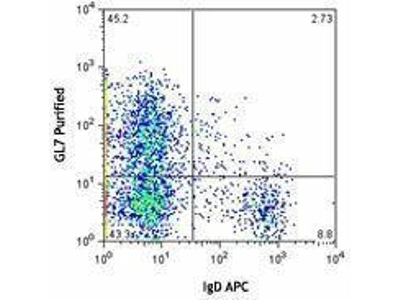 - The GL7 antigen, also known as Ly77, is a 35 kD protein. The GL7 antigen has an epitope containing non-sulfated α2-6-sialyl-LacNAc recognized by the GL7 antibody. The GL7 antigen is expressed by pre-B and immature B cells, activated T and B cells, and about 20 % of TCR-bright thymocytes. It is upregulated on mouse splenocytes following activation. It may play a role in regulation or adhesion. GL7 high-expressing B cells show higher antibody production and antigen presenting capacity.