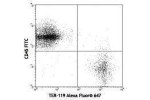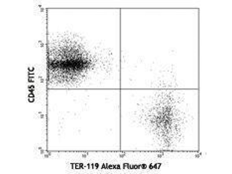 The TER-119 antigen is a 52 kD glycophorin A-associated protein, also known as Ly-76. TER-119 is an erythroid-specific antigen expressed on early proerythroblasts to mature erythrocytes, but not on erythroid colony-forming cells (BFU-E, blast-forming unit erythroid, or CFU-E, colony-forming unit erythroid).
