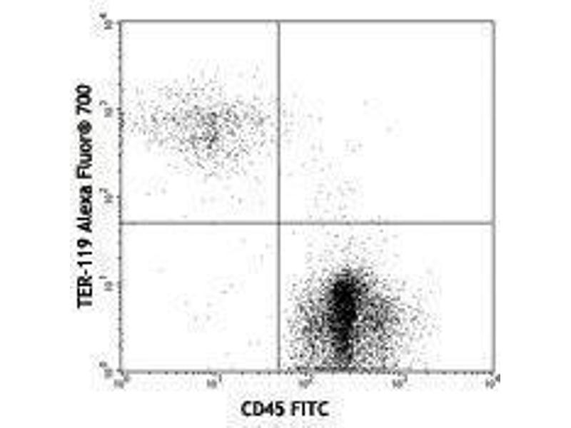 The TER-119 antigen is a 52 kD glycophorin A-associated protein, also known as Ly-76. TER-119 is an erythroid-specific antigen expressed on early proerythroblasts to mature erythrocytes, but not on erythroid colony-forming cells (BFU-E, blast-forming unit erythroid, or CFU-E, colony-forming unit erythroid).