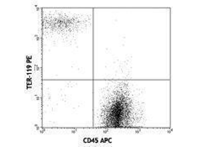The TER-119 antigen is a 52 kD glycophorin A-associated protein, also known as Ly-76. TER-119 is an erythroid-specific antigen expressed on early proerythroblasts to mature erythrocytes, but not on erythroid colony-forming cells (BFU-E, blast-forming unit erythroid, or CFU-E, colony-forming unit erythroid).