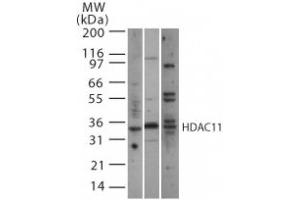 - This HDAC11 antibody was raised against a peptide corresponding to amino acid residues 238-251 of human HDAC11.