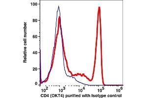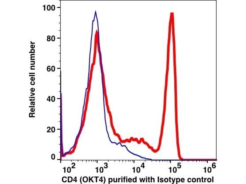 - CD4 is a 55kD type I transmembrane glycoprotein and a member of the immunoglobulin superfamily. It is a specific marker for T lymphocytes, monocytes, macrophages, and dendritic cells. Through interaction of MHC-II, CD4 facilitates cell-cell interaction, thymic differentiation, and activation of downstream signaling cascades. HIV infection of T-cells is instigated through binding of HIV to CD4. The OKT4 binds to the D3 domain of CD4 and does not inhibit HIV binding