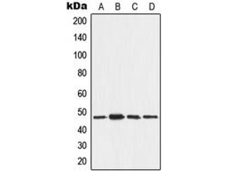 The Rabbit Polyclonal anti-AAMP antibody (ABIN7294820) specifically detects AAMP in WB.