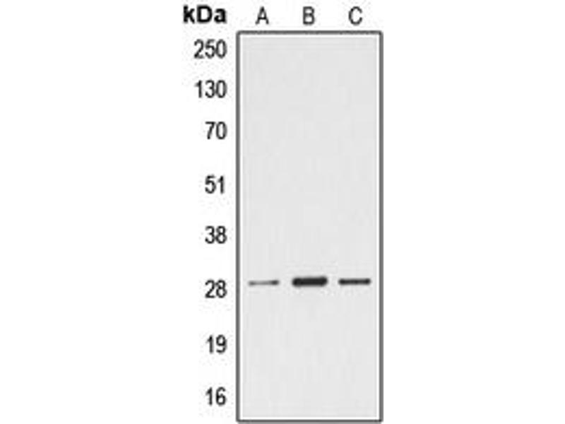 KLH-conjugated synthetic peptide encompassing a sequence within the C-term region of human Ephrin A4.