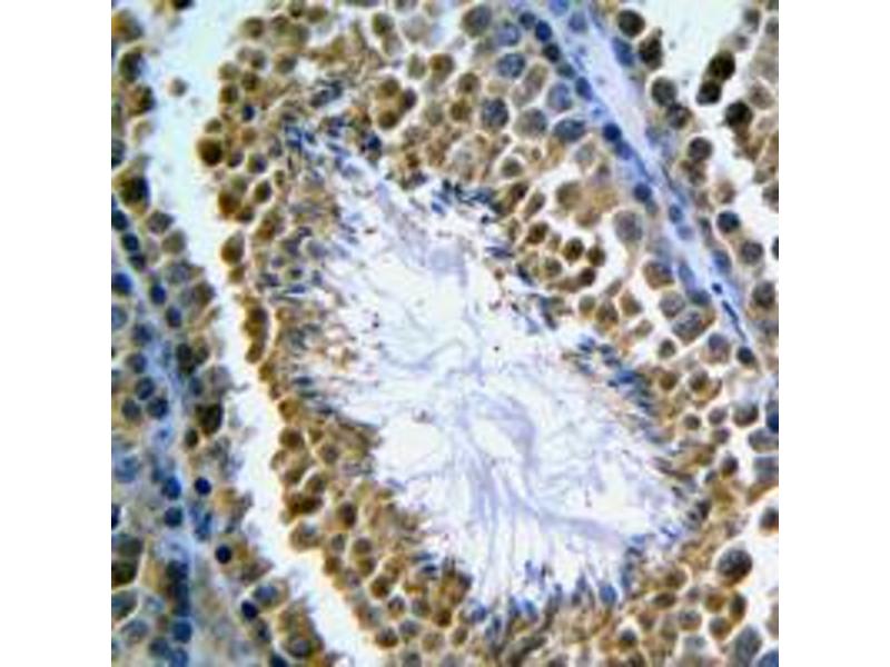 KLH-conjugated synthetic peptide encompassing a sequence within the C-term region of human GANP. The exact sequence is proprietary.
