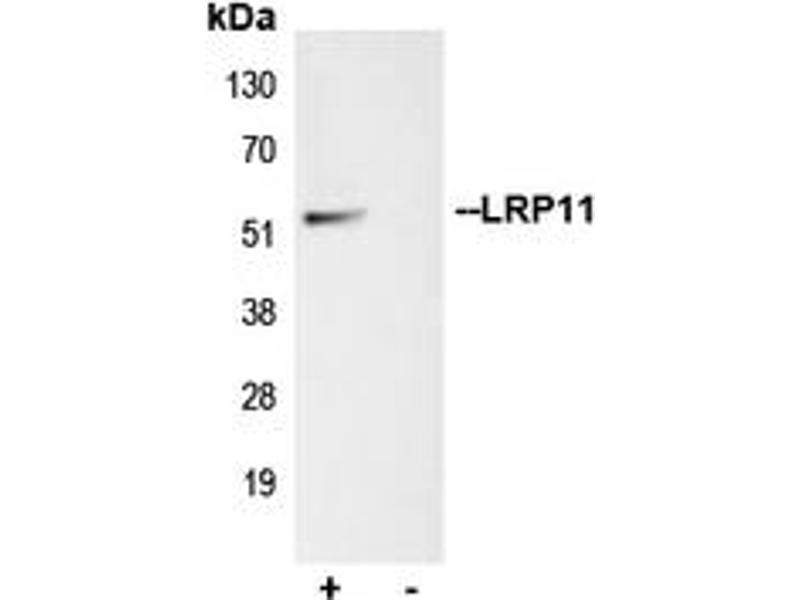 KLH-conjugated synthetic peptide encompassing a sequence within the center region of human LRP11. The exact sequence is proprietary.