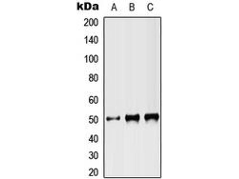 The Rabbit Polyclonal anti-ST3GAL3 antibody (ABIN7298840) specifically detects ST3GAL3 in WB.