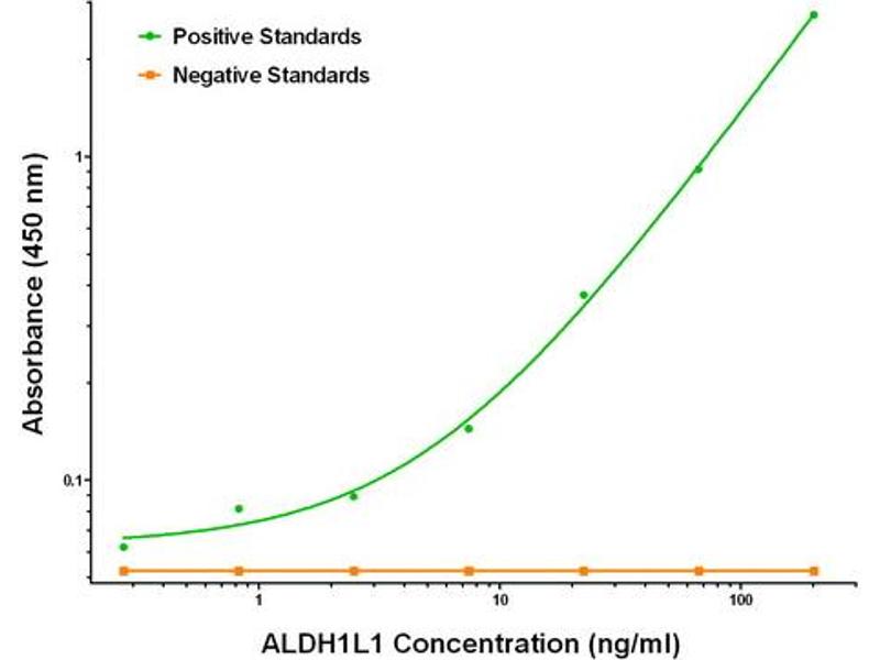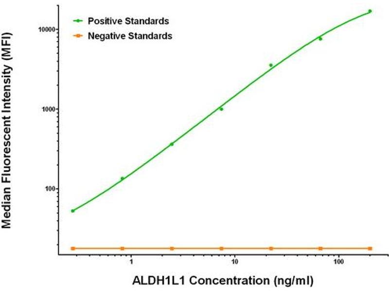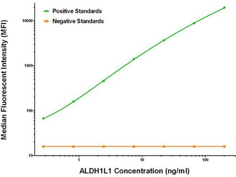 The Mouse Monoclonal anti-ALDH1L1 antibody has been validated for ELISA and LMNX. It is suitable to detect ALDH1L1 in samples from Human.