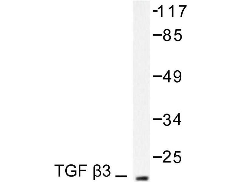 Transforming Growth Factor beta 3 (TGF beta 3) is a member of the TGF beta family of growth factors. The TGF beta polypeptides are multifunctional, capable of influencing cell proliferation, differentiation, and other functions in a wide range of cell types. Transformed, as well as nonneoplastic tissues, release transforming growth factors, and essentially all mammalian cells possess a specific TGF receptor. The multi-modal nature of TGF beta is seen in its ability to stimulate or inhibit cellular proliferation. In general, cells of mesenchymal origin appear to be stimulated by TGF beta whereas cells of epithelial or neuroectodermal origin are inhibited by the peptide. A high level of TGF beta 3 in normal adult heart, lung, and brain suggests a possible role for this factor in the regulation of a variety of normal physiological functions. The expression of TGF beta 3 in different locations and at specific stages of embryogenesis suggests its involvement in the regulation of development. Similar to the other isoforms of TGF beta, the upregulated activation of TGF beta 3 might also be involved in a variety of pathological conditions. TGF beta 3 has been detected in human, porcine, and avian sources and is expressed in cells of mesenchymal origin, suggesting a different role for this protein than for TGF beta 1 or TGF beta 2. TGF beta 3 is less prevalent in natural expression than either TGF beta 1 or TGF beta 2, but is the most abundant mRNA expressed in chick embryos. It is also expressed in human umbilical cord and in several human carcinoma cells.Synonyms: Transforming growth factor beta-3