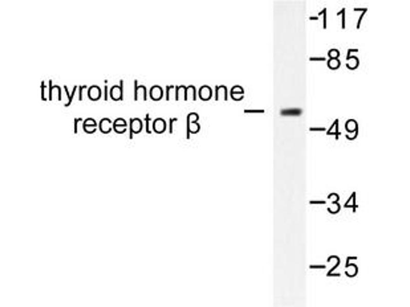 Thyroid hormone nuclear receptors (TRs) are ligand-dependent transcription factors which regulate growth, differentiation and development and represent members of the steroid/retinoic acid superfamily. The two genes encoding TRs identified to date, TRα and TRβ, have been mapped to human chromosomes 17 and 3, respectively. TRs bind to thyroid hormone response elements(TREs) with half-site binding motifs in the orientation of palindromes, direct repeats or inverted palindromes. The affinities of binding are both variable and influenced differentially by 3,5,3'-triiodo-L-thyronine (T3). Transcriptional regulation by TRs is also modulated by heterodimerization with TR nuclear accessory proteins, the most extensively characterized of which are the retinoid X receptors (RXRα, RXRβ and RXRγ). To a certain extent, this activity is regulated by differential phosphorylation of TRs. Thus, not only are the biological activities of TRs regulated by heterodimerization with RXRs, but in addition, the gene regulatory activities of TRs are linked to other hormonal pathways.Synonyms: NR1A2, Nuclear receptor subfamily 1 group A member 2, THR1, Thyroid hormone receptor beta