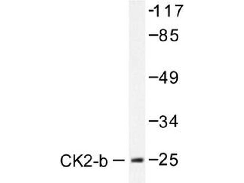 Casein kinase I (also designated CKI) and casein kinase II (also designated CKII) compose a family of serine/threonine protein kinases which are present in all eukaryotes examined to date. CKI family members, which include CKIα, γ, ε and δ, have been implicated in the control of cytoplasmic and nuclear processes, including DNA replication and repair. CKII is usually expressed as a tetrameric complex consisting of either an α2β2 or an αα'β2 structure. The α catalytic subunit is stimulated by the β regulatory subunit, which undergoes autophosphorylation. CKII activity is high in the cytosol and nucleus of proliferating and differentiating cells. CKII is known to phosphorylate more than 100 different substrates including nuclear oncoproteins, transcription factors and enzymes involved in DNA metabolism.Synonyms: CK II beta, CK2N, CSNK2B, G5a, Phosvitin