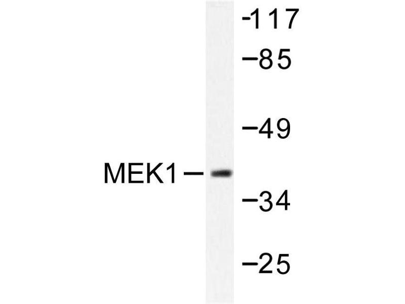 MEK1 (Mitogen activated protein kinase kinase 1) catalyzes the concomitant phosphorylation of a threonine and a tyrosine residue in a Thr-Glu-Tyr sequence located in MAP kinases. MEK1 activates ERK1 and ERK2 MAP kinases. Mitogen activated protein kinase kinase 2 (MEK2 or MAPKK2) is a member of a family of tyrosine/threonine protein kinases that activate the ERK1 and 2 and MAPK enzymes by phosphorylating both residues within the threonine/glutamate/tyrosine (TEY) motif in the activation loop. MEK1 and 2 are also activated by dual phosphorylation, which occurs on serine 218 and 222, in the activation loop of the MEK. Threonine 292 of MEK1 is phosphorylated by ERK 2, which serves as a negative feedback loop by suppressing activation of MEK1.Synonyms: Dual specificity mitogen-activated protein kinase kinase 1, ERK activator kinase 1, MAP kinase kinase 1, MAPK/ERK kinase 1, MAPKK 1, MEK1, PRKMK1
