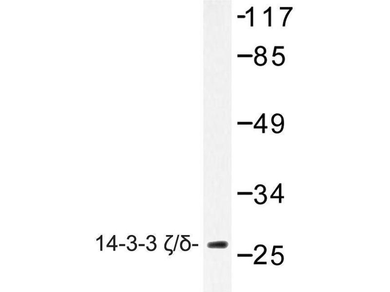 14-3-3 proteins regulate many cellular processes relevant to cancer biology, notably apoptosis, mitogenic signaling and cell-cycle checkpoints. Seven isoforms comprise this family of signaling intermediates, denoted 14-3-3 β, γ, ε, ζ, η, θ and σ. 14-3-3 proteins form dimers that present two binding sites for ligand proteins, thereby bringing together two proteins that may not otherwise associate. These ligands largely share a 14-3-3 consensus binding motif and exhibit serine/threonine phosphorylation. 14-3-3 proteins function in broad regulation of these ligand proteins, by cytoplasmic sequestration, occupation of interaction domains and import/export sequences, prevention of degradation, activation/repression of enzymatic activity and facilitation of protein modification, and thus loss of expression contributes to a vast array of pathogenic cellular activities.Synonyms: KCIP-1, Protein kinase C inhibitor protein 1, YWHAZ