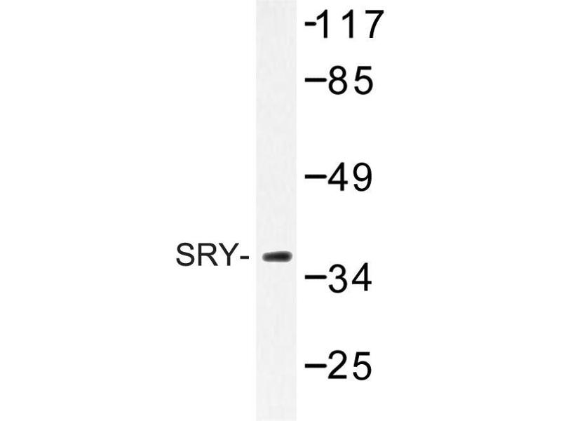 SRY (sex-determining region Y protein) is a transcriptional activator required for male sex determination in mammals. This protein, also referred to as testis-determining factor (TDF), is an HMG box protein that initiates the formation of testis from undifferentiated gonad. The DNA-binding activity of SRY is required for normal testis formation. This DNA-binding activity is thought to be regulated by PKA, which phosphorylates SRY in vivo. Mutations in SRY have been associated with 46,XY gonadal dysgenesis, in which the gonads fail to develop in XY phenotypic females.Synonyms: Sex-determining region Y protein, Testis-determining factor