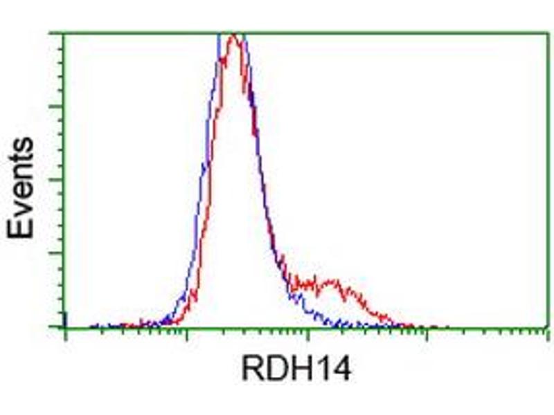 The Mouse Monoclonal anti-RDH14 antibody is suitable to detect RDH14 in samples from Human. It has been validated for WB and FACS.