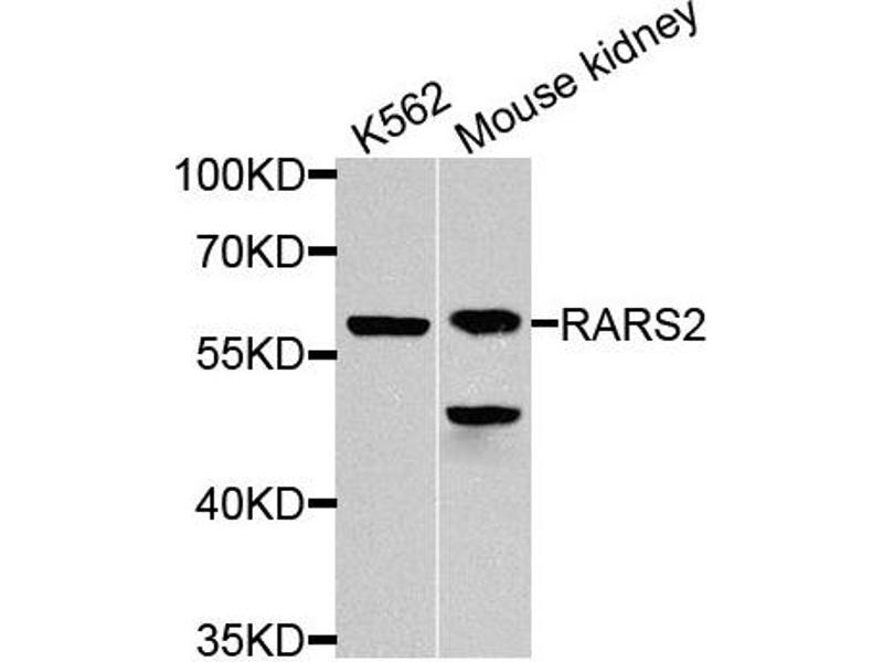 This Rabbit Polyclonal antibody specifically detects RARS2 in WB. It exhibits reactivity toward Human and Mouse.