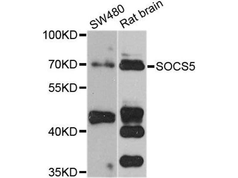 The Rabbit Polyclonal anti-SOCS5 antibody has been validated for WB. It is suitable to detect SOCS5 in samples from Human, Mouse and Rat.