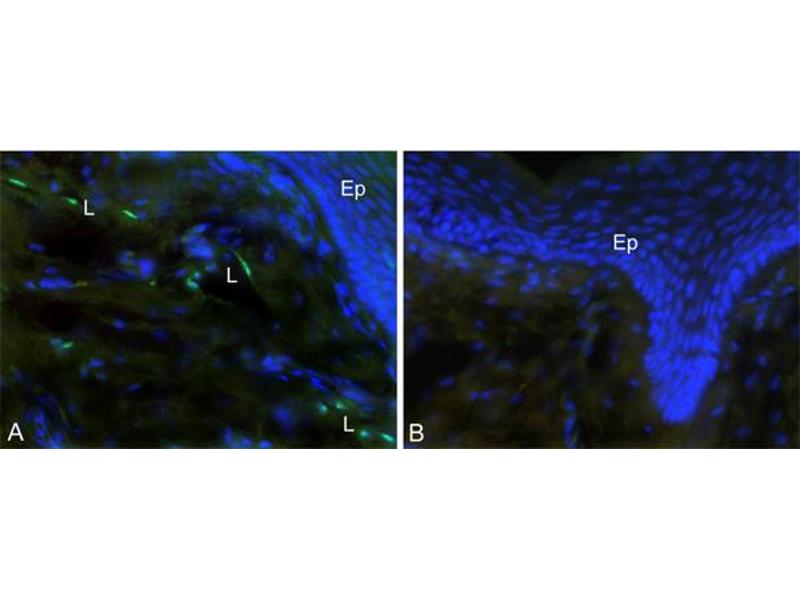 Expression of PROX1 in blood endothelial cells induces expression of other lymphatic marker genes. Together with podoplanin, PROX1 can be used to reliably distinguish lympathic vessels from blood vessels. PROX1 is expressed in CNS, eye, pancreas, liver and heart, and it is one of the most specific and reliable markers for lymphatic endothelial cells.