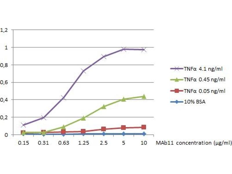 This anti-TNF alpha antibody is a Mouse Monoclonal antibody detecting TNF alpha in WB, ELISA and Func. Suitable for Human. This Primary Antibody has been cited in 4+ publications.