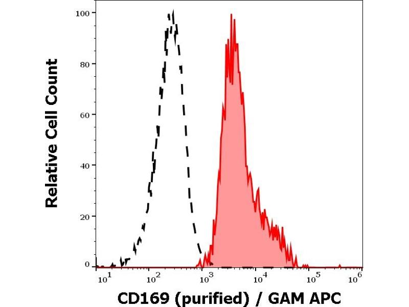The mouse monoclonal antibody 7-239 recognizes an extracellular epitope of CD169 (sialoadhesin, Siglec-1), a 210 kDa type I transmembrane glycoprotein expressed on macrophages and dendritic cells.