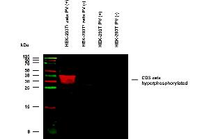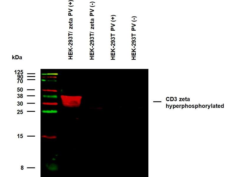 The mouse monoclonal antibody EM-55 recognizes phosphorylated intracellular tyrosine 111 of CD3 zeta chain (CD247), which is a component of TCR/CD3 complex expressed on T cells.