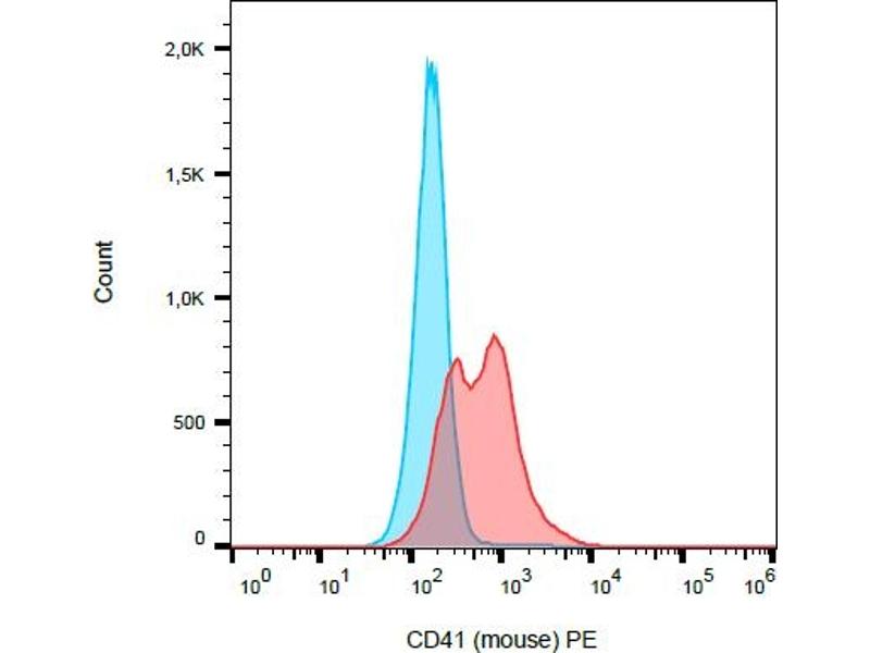 The rat monoclonal antibody MWReg30 recognizes an extracellular epitope of CD41 (GPIIb), a transmembrane glycoprotein (integrin family) composed of two chains GPIIb alpha (heavy chain, 120 kDa) and GPIIb beta (light chain, 23 kDa). CD41 is mainly expressed on platelets and megakaryocytes.
