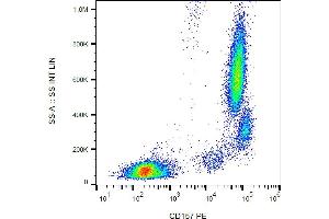 Flow cytometry: The reagent is designed for analysis of human blood cells using 10 μL reagent / 100 μL of whole blood or 106 cells in a suspension. The content of a vial (1 ml) is sufficient for 100 tests.