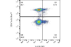 The mouse monoclonal antibody T21/8 recognizes an extracellular epitope on the N-teminus of CD195, an approximately 45 kDa G-protein coupled receptor 1 family protein expressed on resting T cells, monocytes, macrophages, and immature dendritic cells.