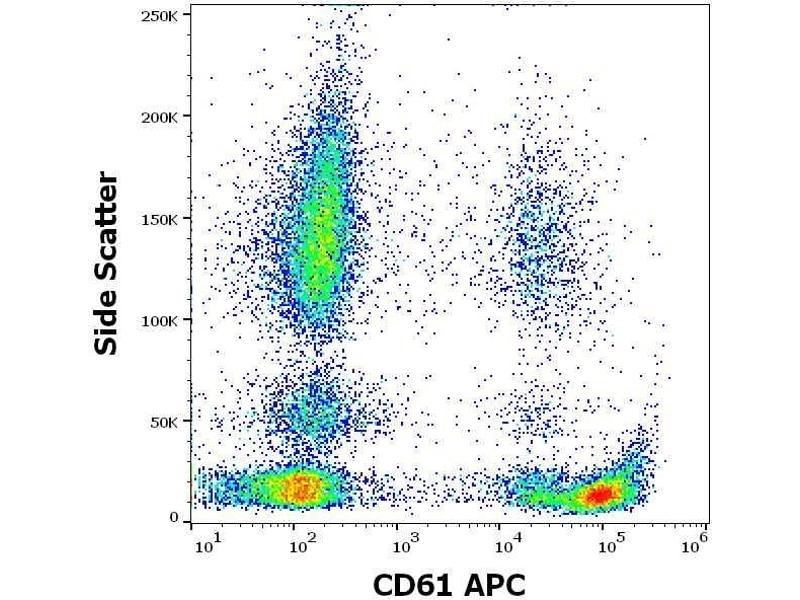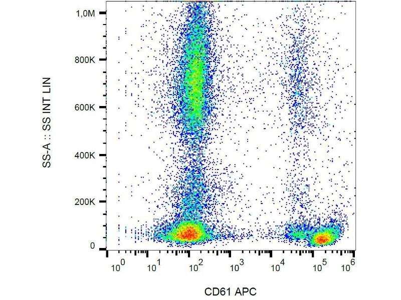 The mouse monoclonal antibody VIPL2 recognizes an extracellular epitope of CD61, a 90-110 kDa transmembrane glycoprotein of integrin family, expressed on platelets, megacaryocytes, osteoclasts, endothelial cells and other cell types, including leucocytes and smooth muscle cells.