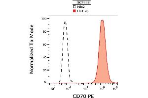 The Mouse Monoclonal anti-CD70 antibody has been validated for FACS. It is suitable to detect CD70 in samples from Human. There are 4+ publications available.