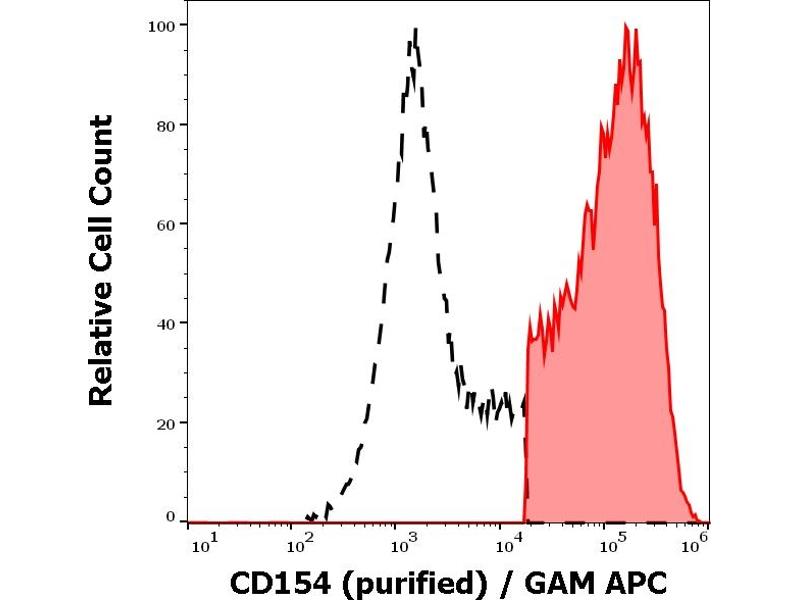The mouse monoclonal antibody 24-31 detects an extracellular epitope of CD154 / CD40L (CD40-ligand), a 39 kDa cell surface type II glycoprotein expressed predominantly on activated CD4+ lymphocytes.