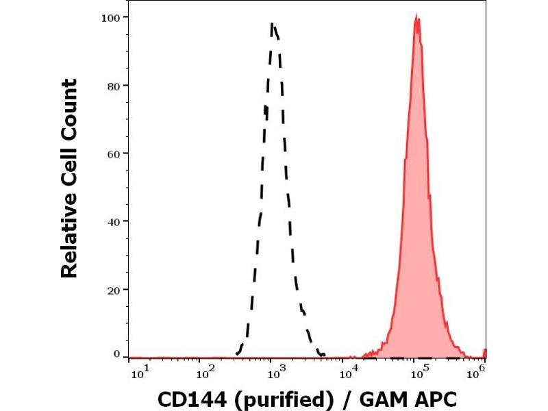- Cadherin 5,CD144 / VE-cadherin (cadherin 5) is the major cadherin that is present at endothelial junctions. It is also strictly endothelial specific. Under vascular permeability increasing conditions (and also in capillaries and veins) CD144 is being phosphorylated, which promotes its rapid and reversible internalization. On the contrary, binding of p120 catenin (delta1 catenin) maintains CD144 localization at the plasma membrane, which stabilizes the junction and reduces vascular permeability.,Cadherin 5, CDH5, 7B4, VE-cadherin