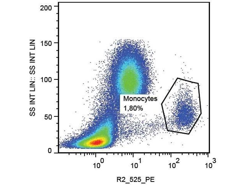 Flow cytometry: The reagent is designed for analysis of human blood cells using 10 μL reagent / 100 μL of whole blood or 106 cells in a suspension. The content of a vial (1 ml) is sufficient for 100 tests.