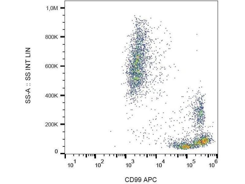 The APC-conjugated Mouse Monoclonal anti-CD99 antibody (Clone 3B2-TA8) (ABIN2749207) specifically detects CD99 in FACS.