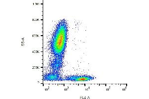 Flow cytometry: The reagent is designed for analysis of human blood cells using 10 μL reagent / 100 μL of whole blood or 106 cells in a suspension. The content of a vial (1 ml) is sufficient for 100 tests.