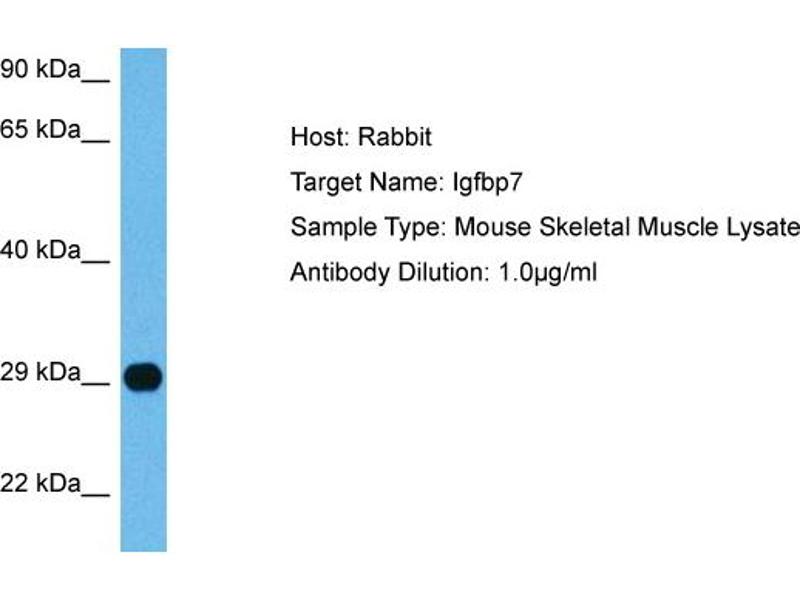- This is a rabbit polyclonal antibody against IGFBP7. It was validated on Western Blot using a cell lysate as a positive control.